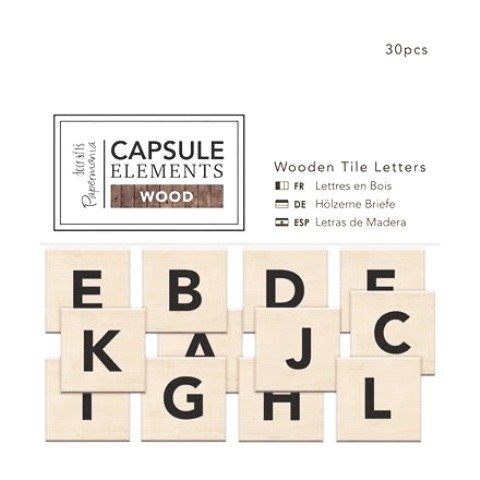 Litery alfabetu drewniane CAPSULE ELEMENTS WOOD TABLICZKI 30 szt. Papermania docrafts
