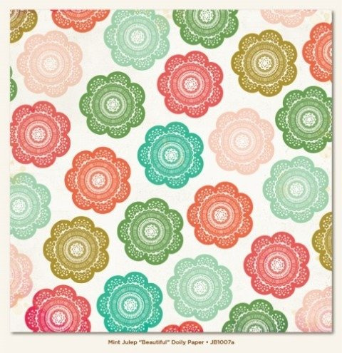 Papier JUBILEE BEAUTIFUL MINT JULEP DOILY PAPER by Celeste Knight and Jen Allyson stwarza wiele możliwości ciekawych aranżacji i wspaniale ułatwia pracę twórczą. Idealny do scrapbookingu, ozdabiania kartek, jako tło LO, baza przeróżnych dekoracji lub do oklejania większych płaszczyzn (np. pudełek).