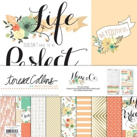Papier do scrapbookingu dwustronny z naklejkami 30,5 x 30,5 cm NINE & CO. COLLECTION PACK 9 szt. Teresa Collins