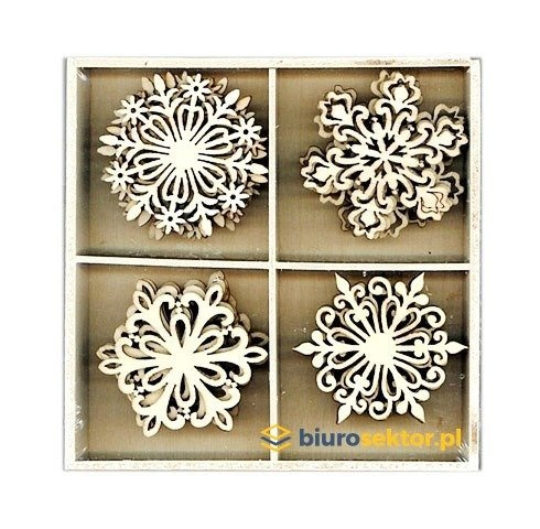 Ozdoby drewniane BOŻE NARODZENIE ŚNIEŻYNKI PŁATKI ŚNIEGU 20 szt. dpCraft