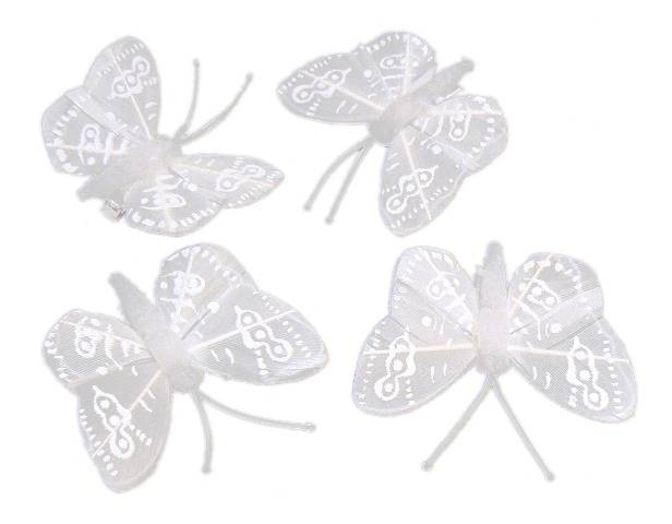 Motyl materiałowy na klipie BIAŁY 3,5 cm 4 szt. CAT