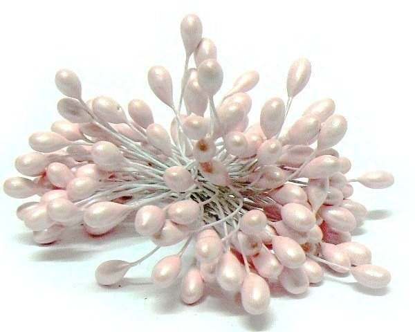 Pręciki do kwiatów różowe perłowe. Połączone drucikiem długości ok. 6 cm.